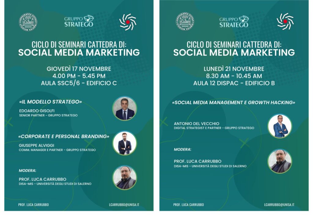 Gruppo Stratego all’Università degli Studi di Salerno per un ciclo di seminari sul Social Media Marketing