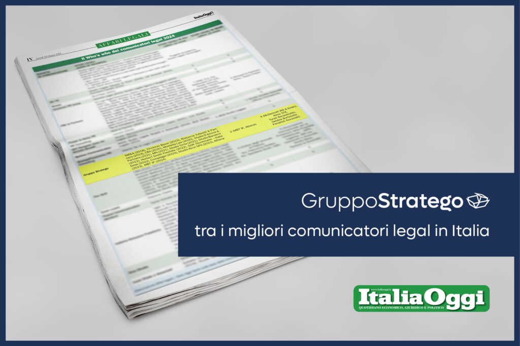 Siamo orgogliosi di annunciare che – per il sesto anno consecutivo – Italia Oggi, nell’ambito della ricerca annuale indipendente sul “Who’s who” dei comunicatori legal, ha individuato Gruppo Stratego tra le principali società italiane dotate di ...