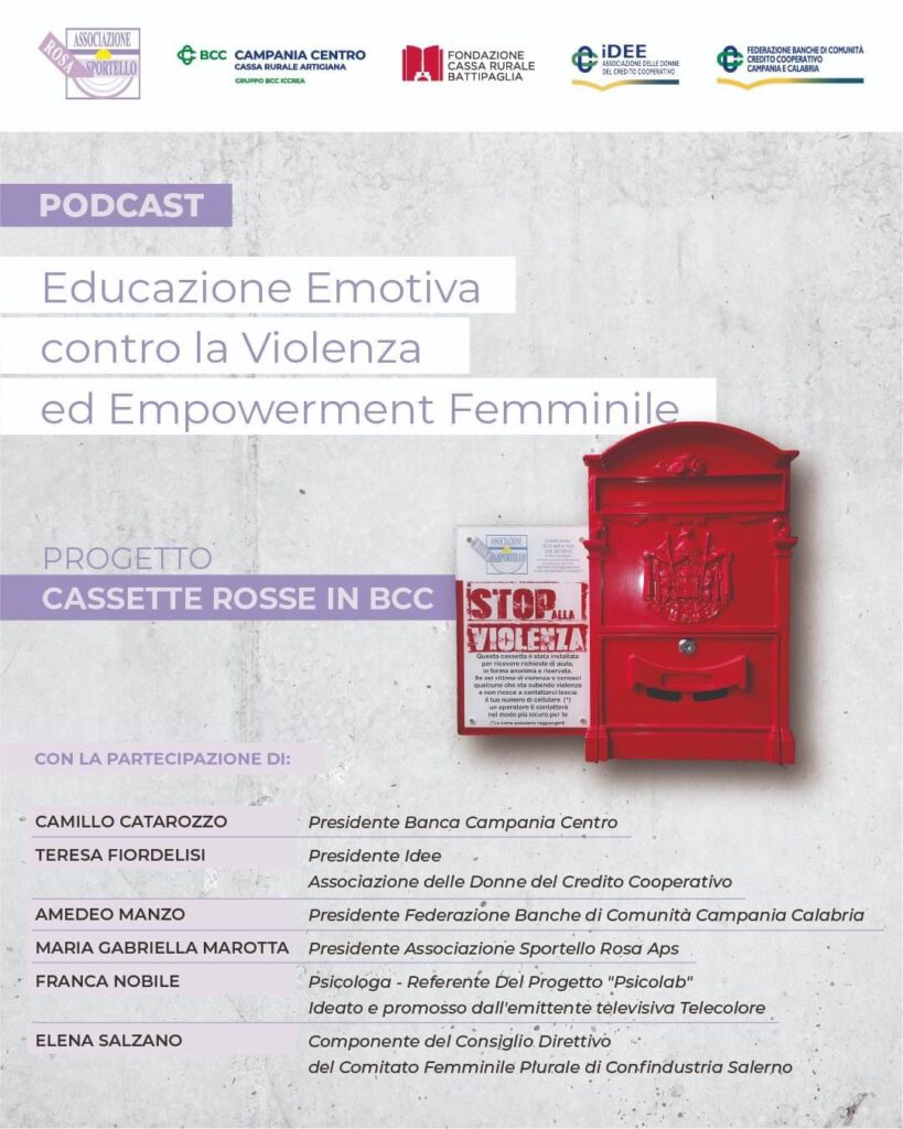 Online il podcast “Educazione emotiva contro la violenza ed empowerment femminile” promosso nell’ambito del progetto “Cassette Rosse in BCC”