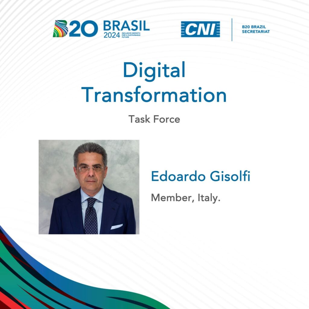 Edoardo Gisolfi tra i 10 rappresentanti italiani della Task Force sulla transizione digitale del B20 in programma in Brasile